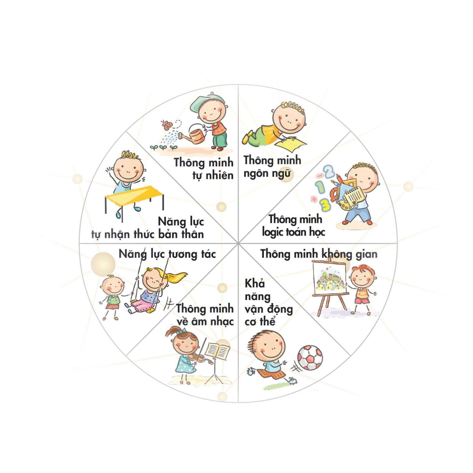 Trong 8 loại hình trí thông minh, trẻ có thể nổi trội đặc biệt ở một khả năng nào đó nhưng cũng có thể sở hữu nhiều loại hình thông minh khác nhau. (ngôn ngữ, logic toán học, không gian, âm nhạc, khả năng vận động cơ thể, năng lực tương tác, năng lực tự nhận thức bản thân, tự nhiên)