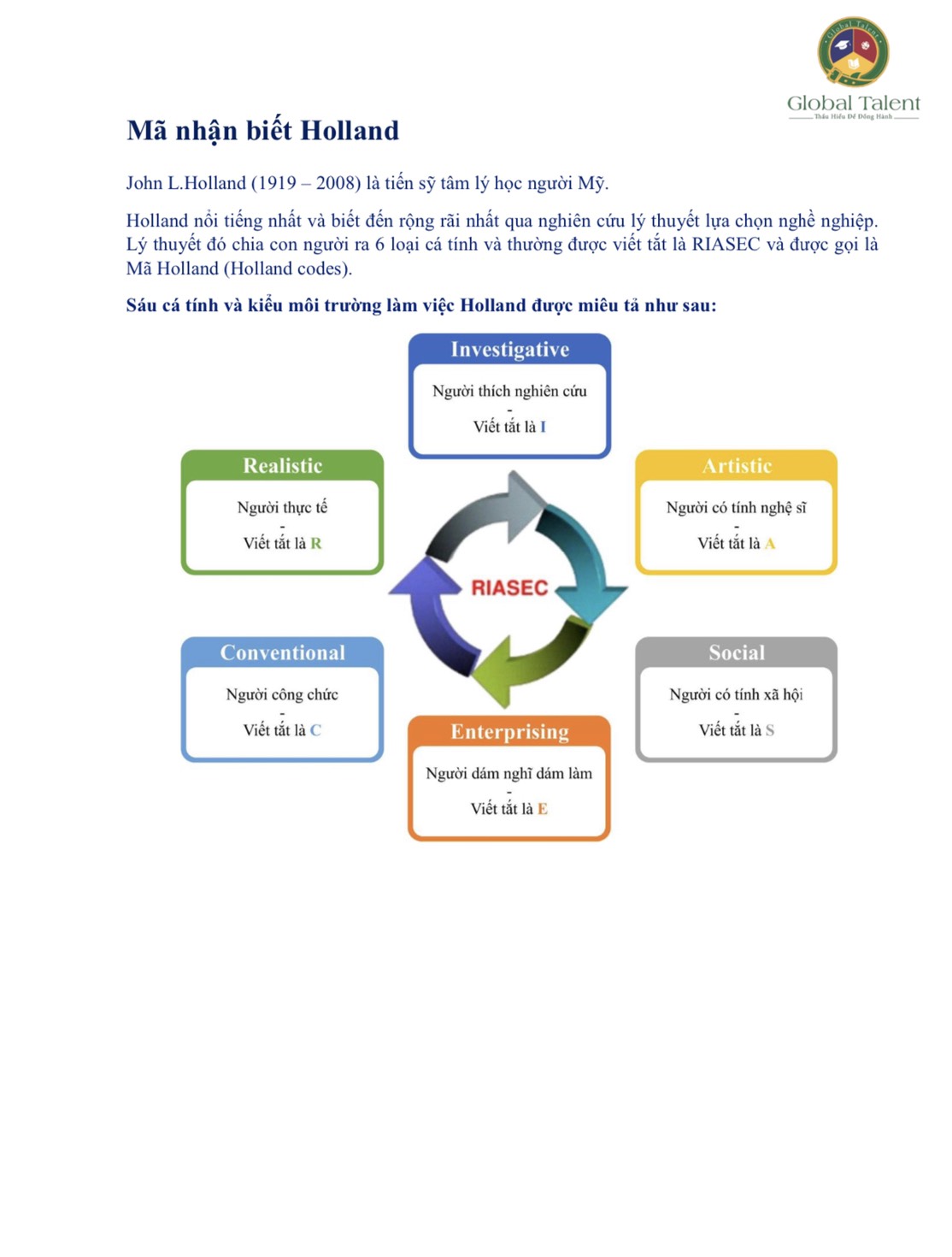 HIỂU VỀ MÃ HOLLAN - PHƯƠNG PHÁP LỰA CHỌN NGHỀ NGHIỆP PHÙ HỢP 07/08/2020 Lê Anh Tiến 0 Bình luận BÌNH LUẬN: Gửi bình luận