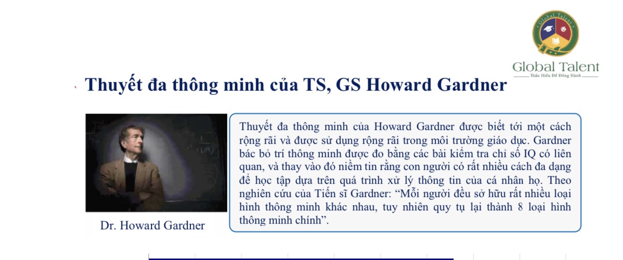 Theo Howard Gardner, trí thông minh đa dạng cho thấy mỗi con người có khả năng biểu đạt tri thức của mình theo 8 cách khác nhau và học theo cách tốt nhất như thế nào.